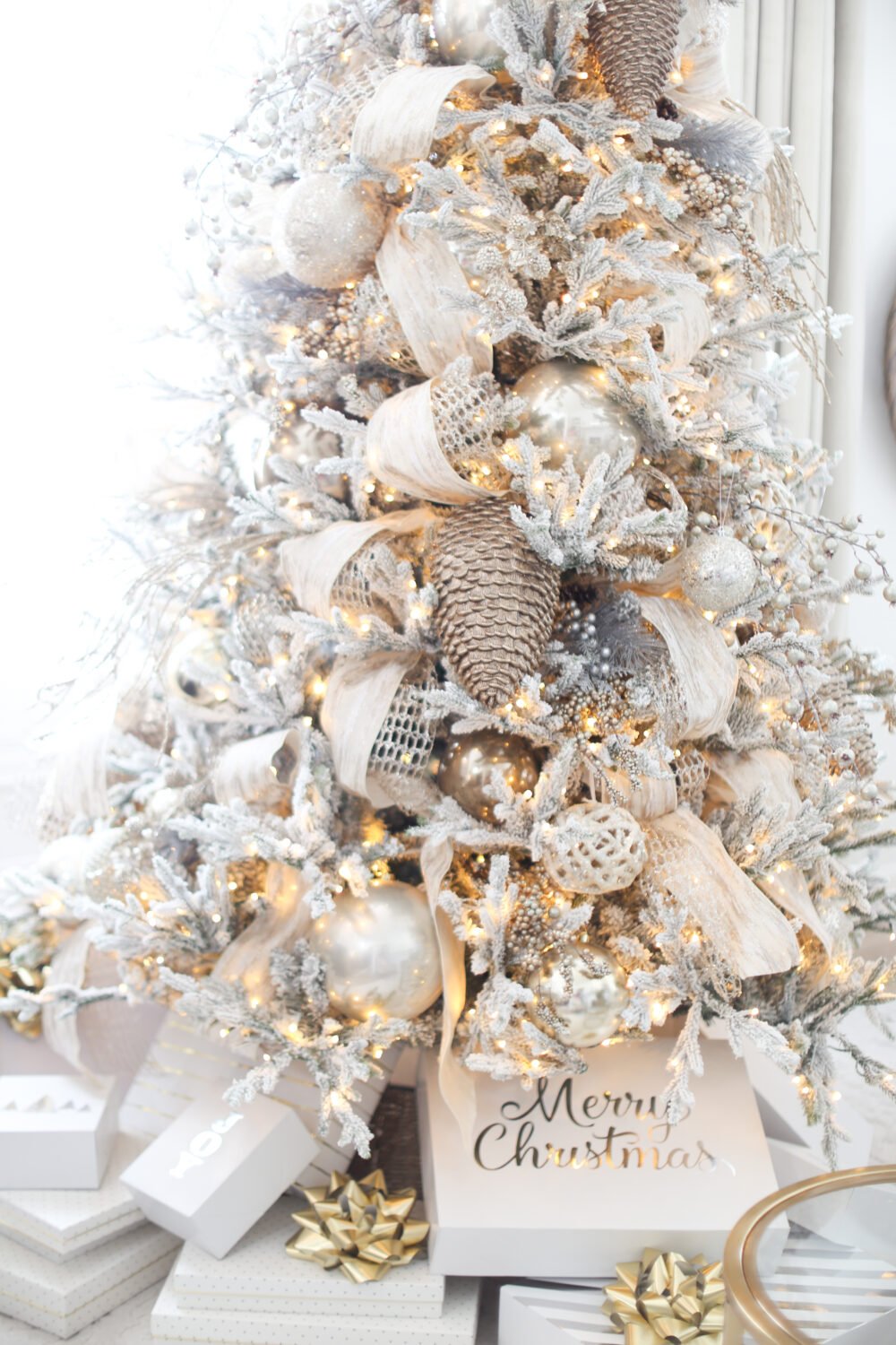 The tree in here is decorated in a beautiful elegant palette of golds, pearls, creams and slivers! I like to describe my style as casual elegant but this tree for sure leans towards that elegant style! You can shop everything on this tree here!