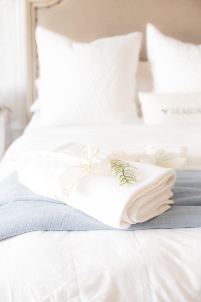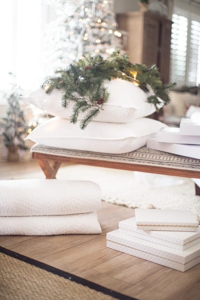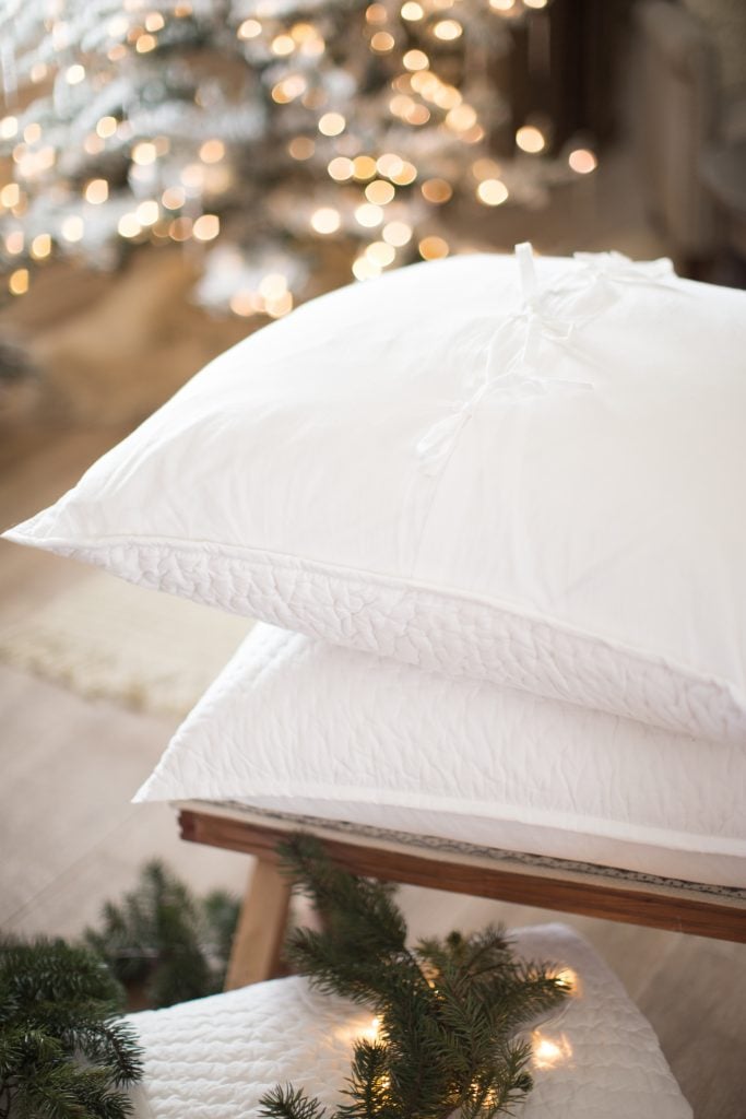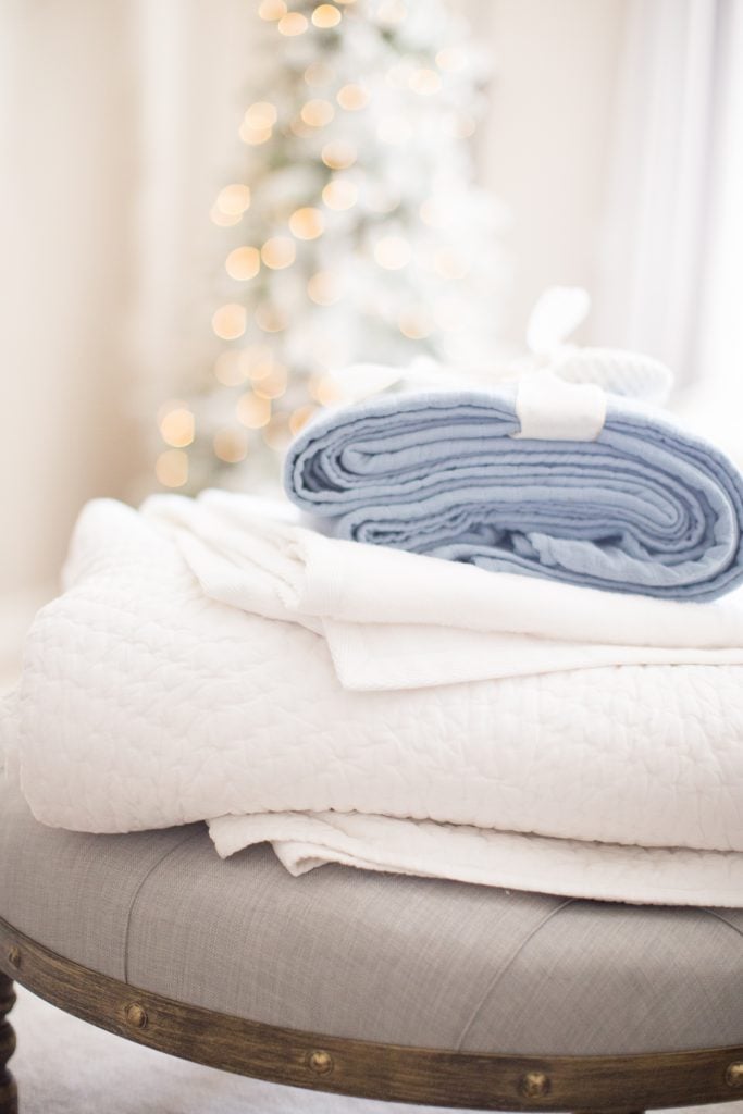 You already know I love a good throw. I have a row of hooks in my family room dedicated to them! So I know throws and the Cotton Fleece White Woven Throw is one of the softest I’ve ever felt! Perfect size to throw in a stocking, gift to a neighbor or teacher who are on your nice list! If you’re looking for a blanket, the Gossamer Shale King Blanket in Ice Blue is woven in three gauzy layers which makes it light weight and romantic. Can you imagine it in pink for a little girls room? I can. It’s also finished with hemmed edges for a polished look.