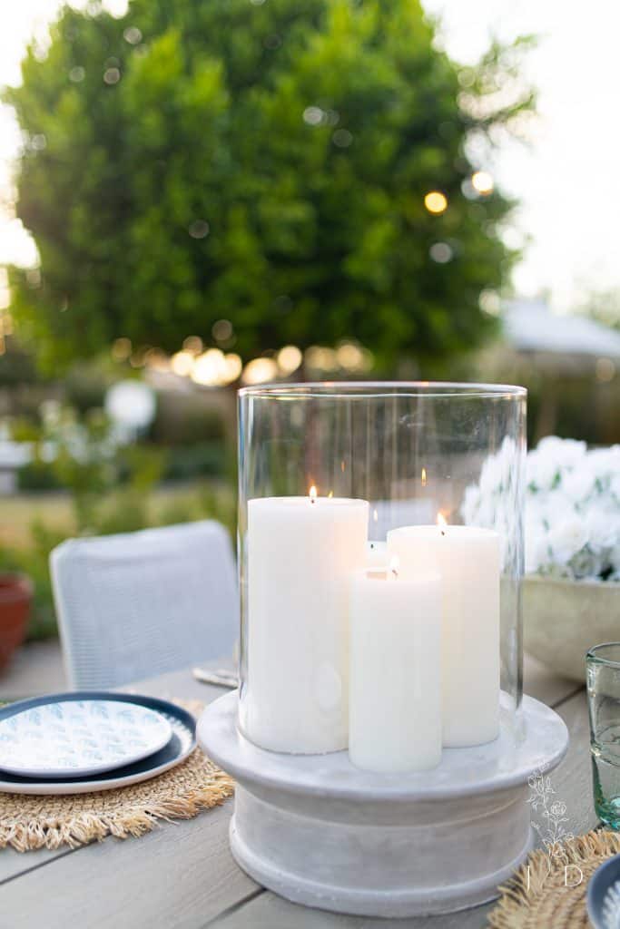 Lighting, music and smell aka sight, sound and scent really make a difference. It’s these touches that people dont notice but miss when it’s not there. Outside when the sun goes down we have our string lights on a timer so we don’t miss a beat. I also make sure to set out candles and have a playlist going in the background before any guests arrive.