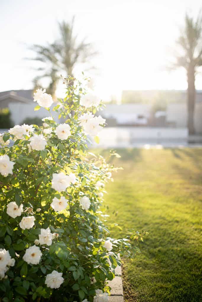 Consider your backdrop. Our backyard is filled with lush greenery, white roses, and mature trees—this natural setting sets the tone for our design choices.