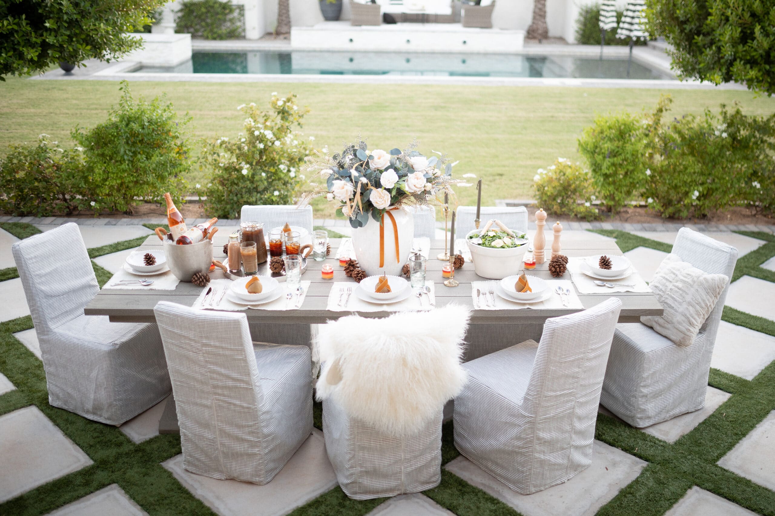 If you’re ready for fall entertaining then I have a beautiful table just for you! This gorgeous set up in in partnership with my friends at Arhaus! I’ve set up a dreamy space outdoors in our backyard to help you dream up your next outdoor dinner party and table setting.
