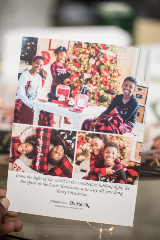These glitter Christmas cards from Shutterfly are just my style. Timeless with a bit of fun mixed in. I love the fact that this card also has an option for multiple pictures to display as well. You might recognize these pictures from the Christmas tree post I wrote last month. All red buffalo check and everything! For this theme I was looking for something with red or black as the base with a bit of bling! A good selection of the cards on Shutterfly let you pick a different color for the card so always be on the look out for a few different options!
