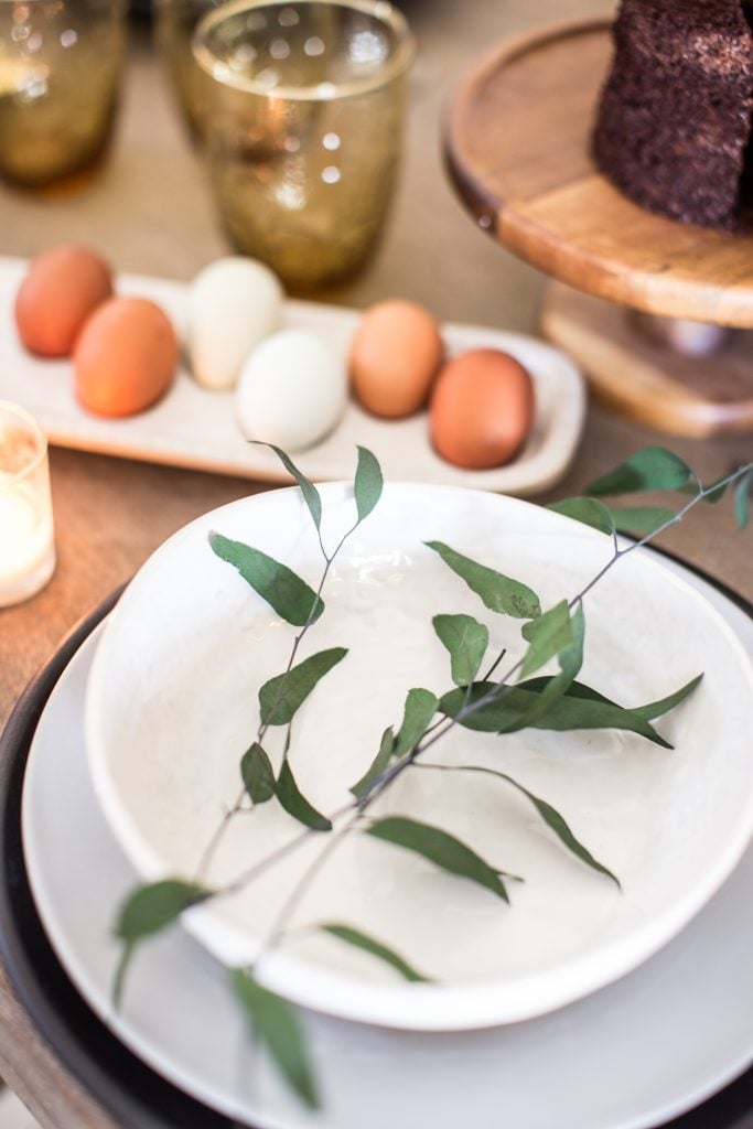 Not only did I use greenery on each table setting, I also filled a white vase I had with leftover stem clippings! These are actually faux stems dipped in a green preserve so they look very real! Green gives any table a natural element that’s hard not to notice!