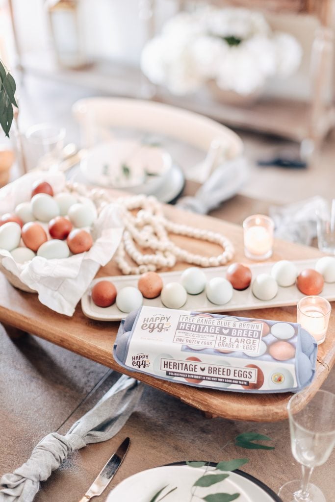 Spring is right around the corner! So if you’re still dealing with bone chilling snow, then hopefully you’ll start to get some relief! Phoenix has some amazing weather all year around. So I’ve been enjoying ” spring” weather for a few weeks now! So when Happy Eggs contacted me to make a spring table highlighting their heritage line of eggs, I thought YES! What a great way to get those spring creative vibes going!