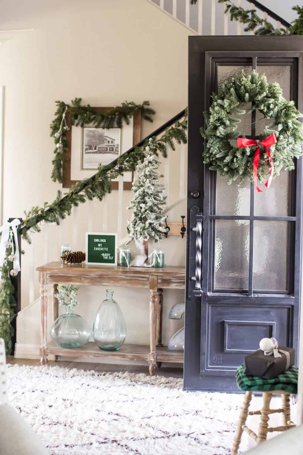 Simple greenery and wreaths (hung with command hooks!) set a welcoming tone.