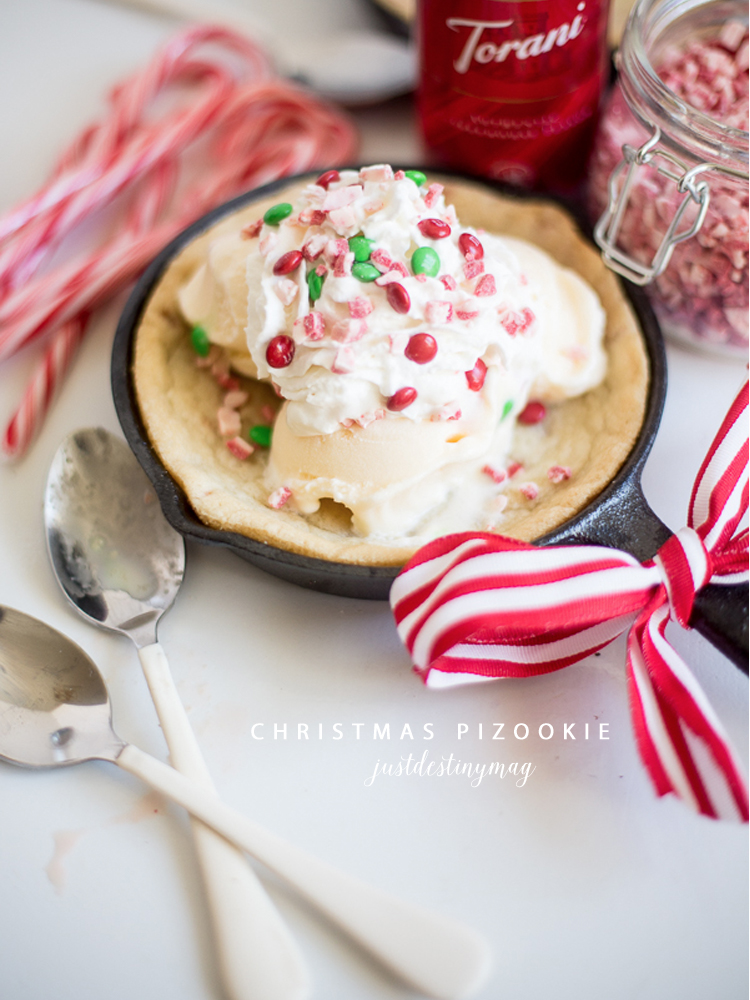 Every year I find myself in the kitchen baking up a storm and this year has been no different. If you don’t already know, my little family is from Phoenix so the holiday season looks a little different out here. 80 degree days, short sleeves, iced chocolate cocoa, and ice cream seem to be the norm out here in the desert:0) Ice cream is something we enjoy year round so today I’m sharing a little treat that we have grown to love in our house and that’s PIZOOKIES. It’s a pizza like cookie topped with ice cream and all kids of other yummy goodness. It’s definitely a fun little tradition we have each year. During Christmas we put a little spin on it and add a lot of peppermint flavors and Christmas candies.
