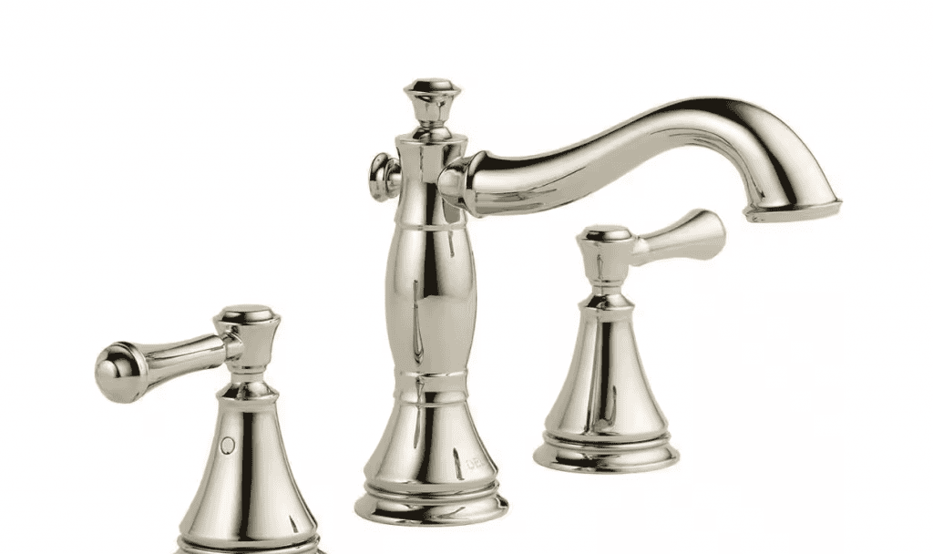 Today I want to to show you the details of our powder room and how we used a classic and elegant Delta bathroom faucet from the Cassidy Collection to start things off and set the tone for the space. Inspired by a female silhouette with a cinched waist, the traditionally styled Cassidy Collection features clean lines and elegant design details. Which of course I LOVE! Here you can see the two handle widespread faucet installed in our powder room coupled with a marble toped vanity.