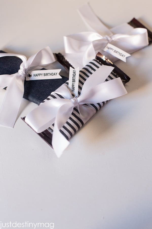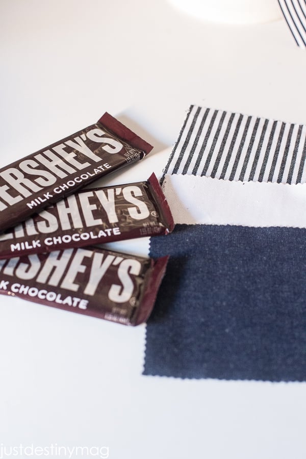 Use the denim quilts to make fun candy bar wrappers! They are the perfect size for a full sized Hershey Bar.