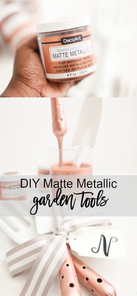 This DIY project is just what you need to get out of those winter blues! Spring has failed to show up in most of the country. Here in Phoenix we usually skip spring and head straight to summer in the worse kind of way ( 100 degree temperatures) So if you’re still waiting for the sun to come out keep yourself busy with some easy DIY projects. This one is brought to you by my friends over at DecoArt! They have a beautiful line of Metallic paints in a matte finish that will leave you wanting to paint all the things. The Matte Metallic paint is offered in a variety of trendy and classic colors, you are guaranteed excellent adhesion and rich, smooth coverage on all your craft projects!