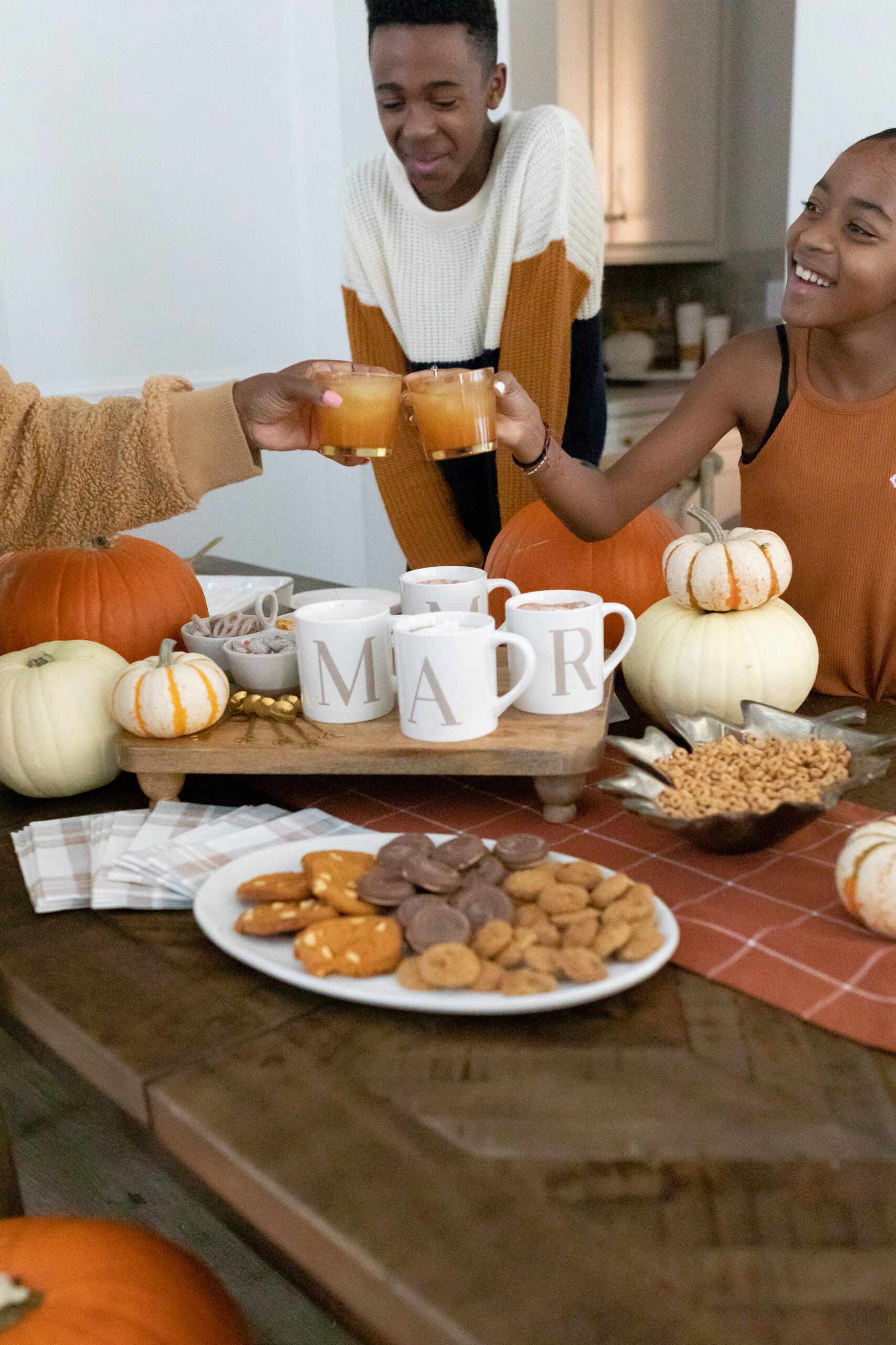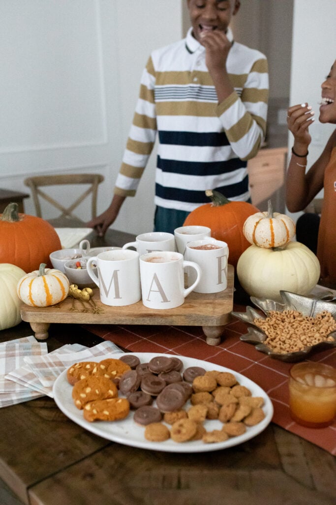Then use bowls and fall themed dishes to help display the other ones. This not only makes for an easy fall family night but a cute one too! You want your family to get excited and if your family is anything like mine they get excited when mom puts a little extra effort in the presentation. It works every time lol!