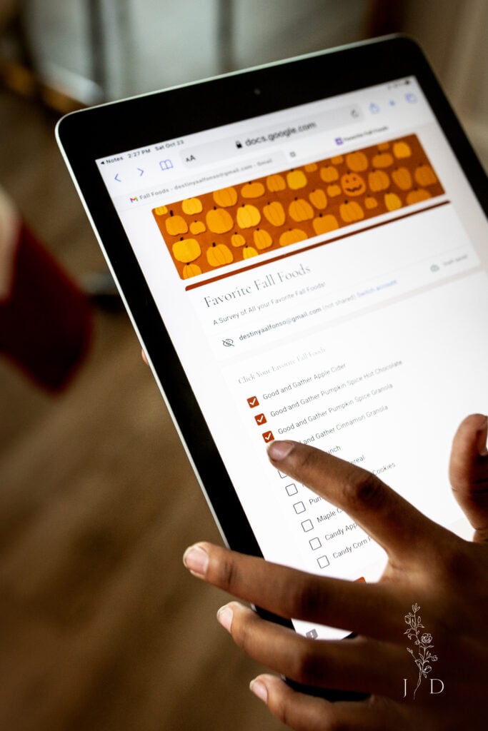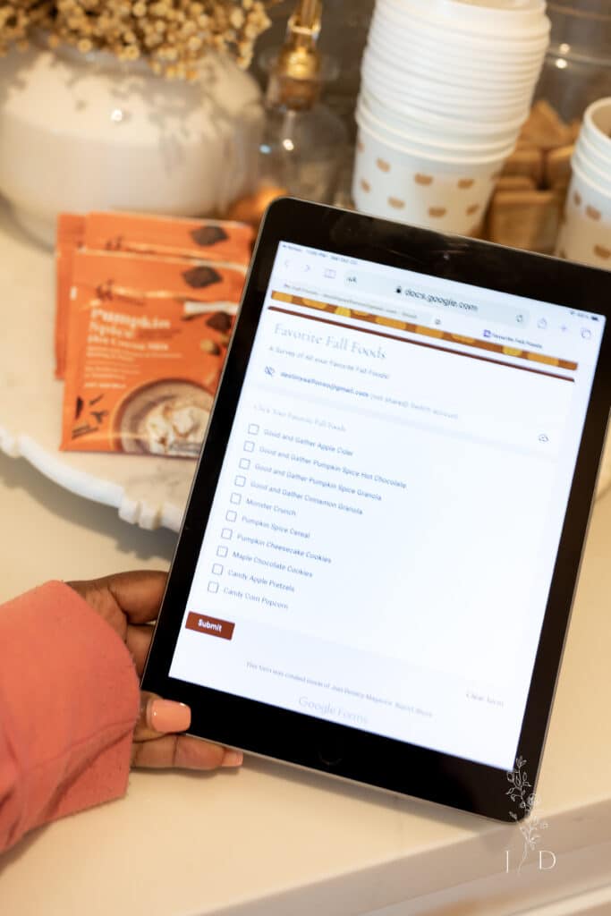 If you’re having more than just the family take part on this fall taste testing then use and Ipad to take a poll! I made a simple one using a online form. Just have everyone vote on their favorites and submit. Use the Ipad to keep track.