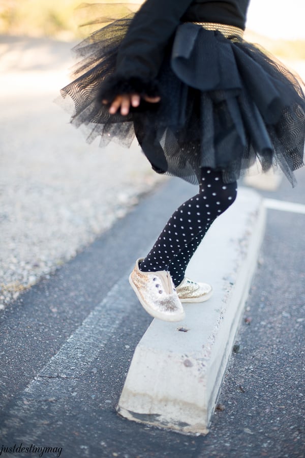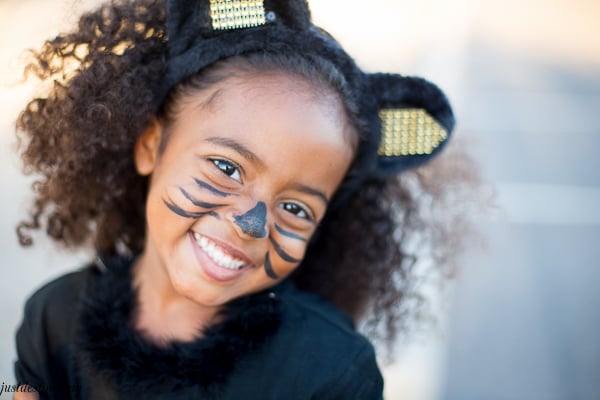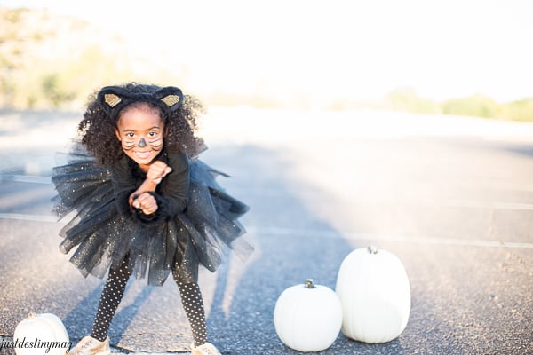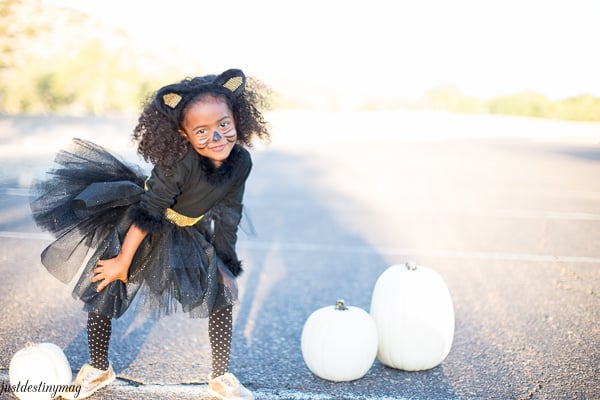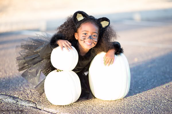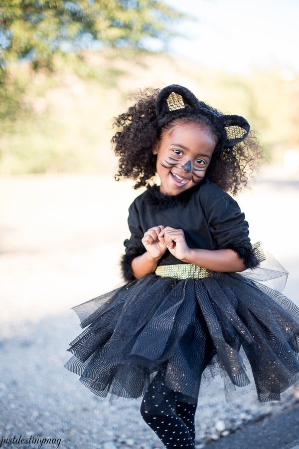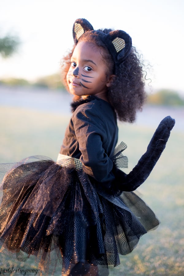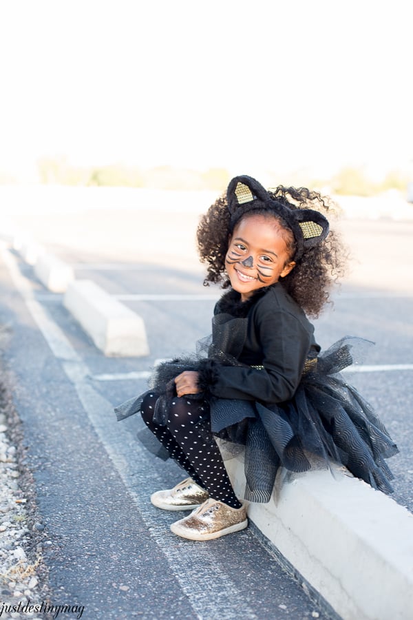 To finish off add your little ones tights, shoes, ears and tails! You can also find some awesome black face paint at Michaels for those cute little whiskers and nose!