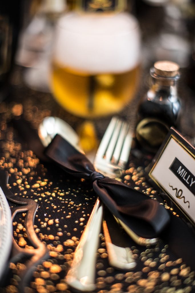 I also tied up plastic goldware in black stain ribbon for each place setting. Such and easy DIY for you to do for your own table and it helps keeps things nice and tidy.