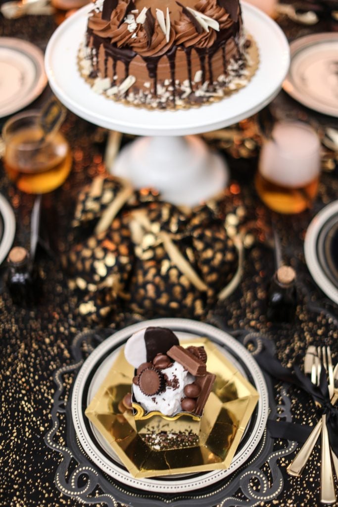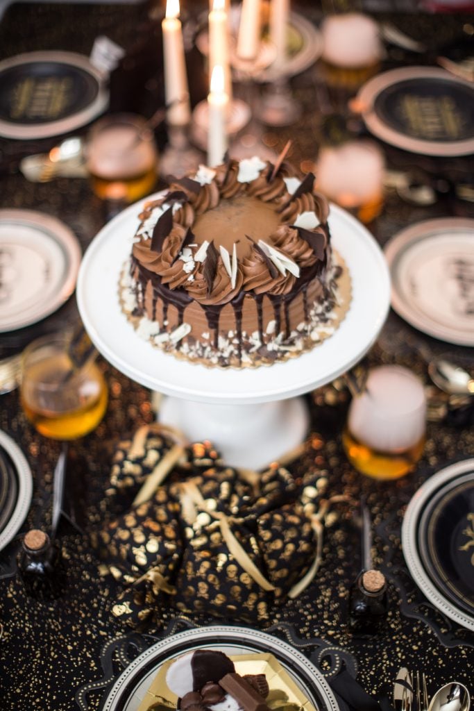 Dress up the table with delicious treats like chocolate cake, sweet treats and a mountain full of chocolate to really draw your guests to the table!