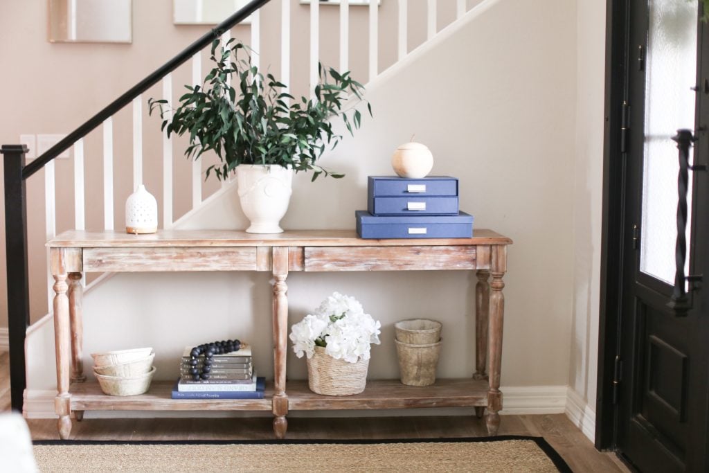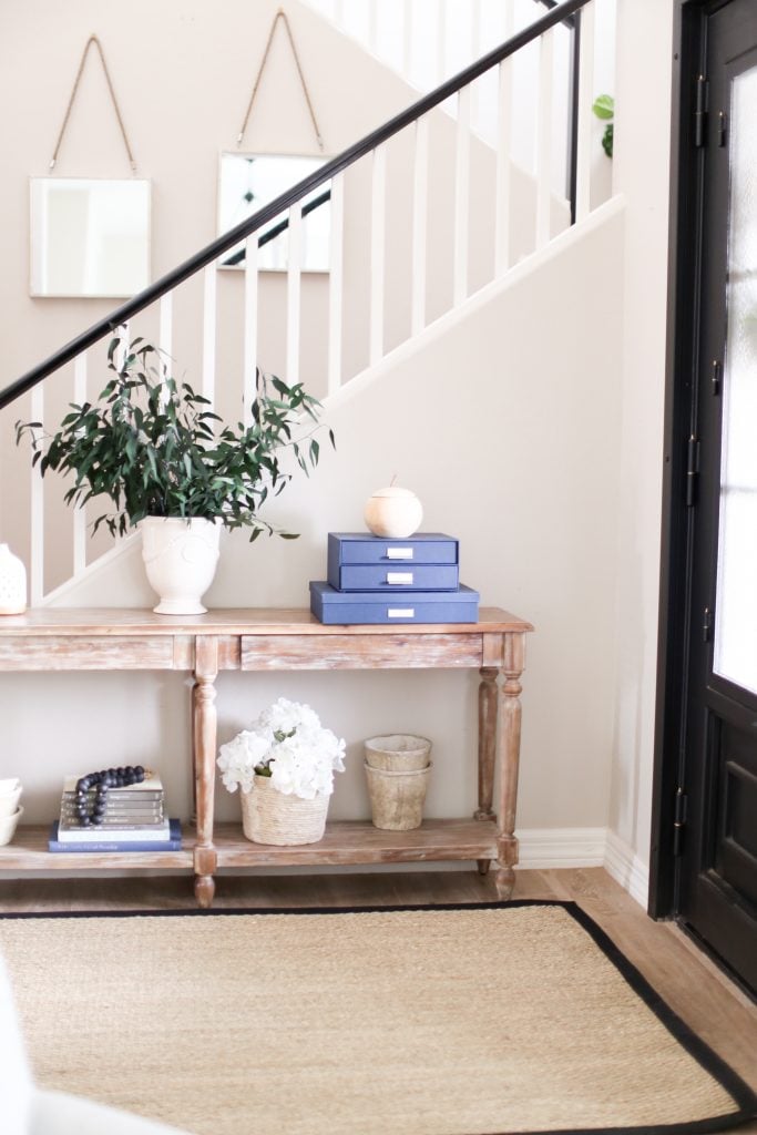 If you need your entry to be more functional, hide storage with decorative pieces like this cute little citrus bowl or stylish drawers. When things start to get cluttered in this area I can do a quick clean up and hide unwanted items before guests arrive. The console that I picked was actually our sofa table in our Durango home. I knew I wanted to keep it but I didn’t really fit with our new layout of the family room. I’m moved it several times since we’ve been in this house ( I MOVE STUFF ALL THE TIME) but I feel like this might be the best spot for it! You can find the console table here.