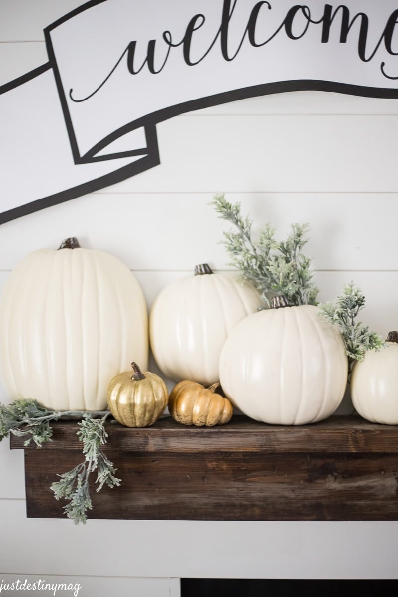 I absolutely love this mantle Destiny! What a great use of the half pumpkins. So pretty!