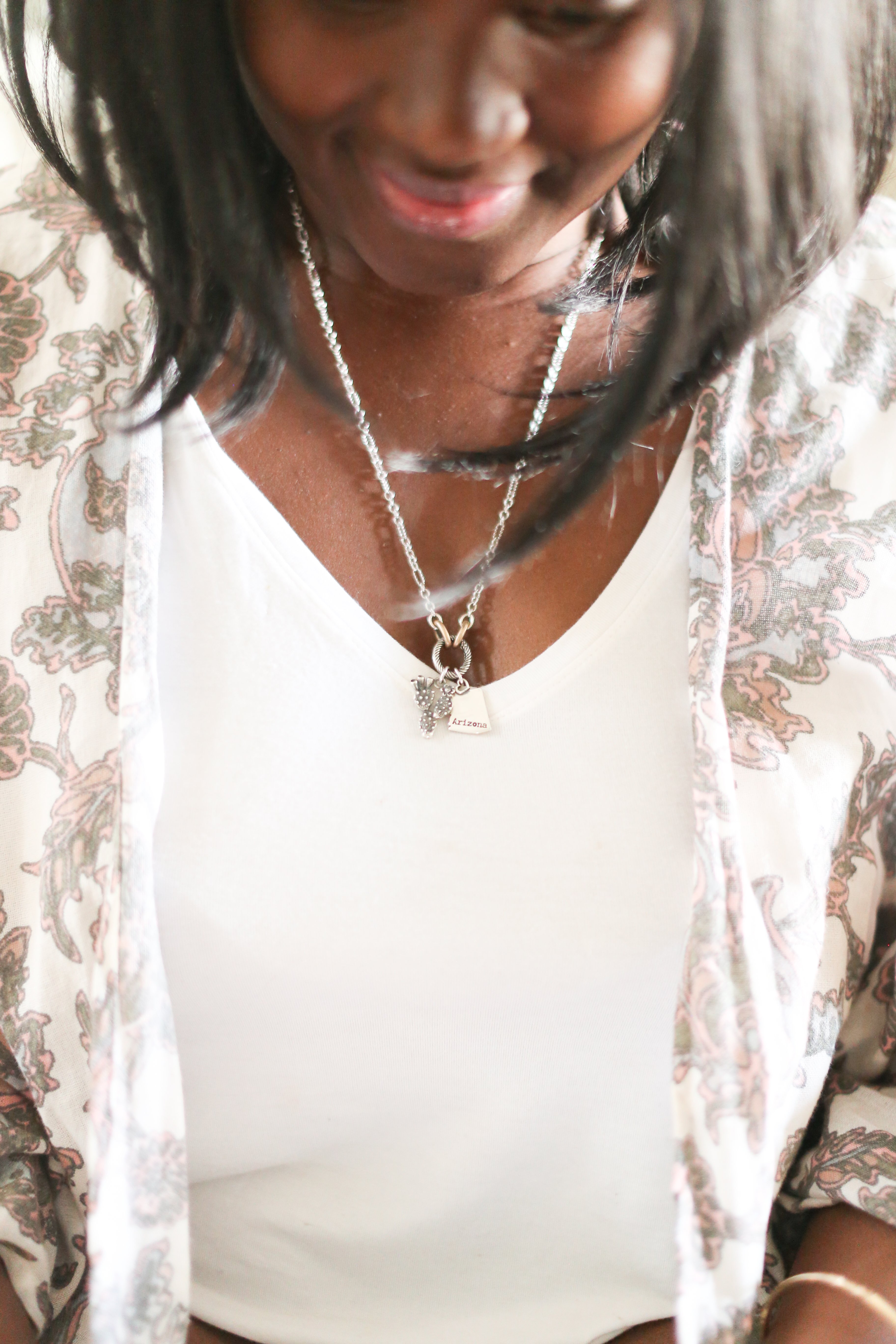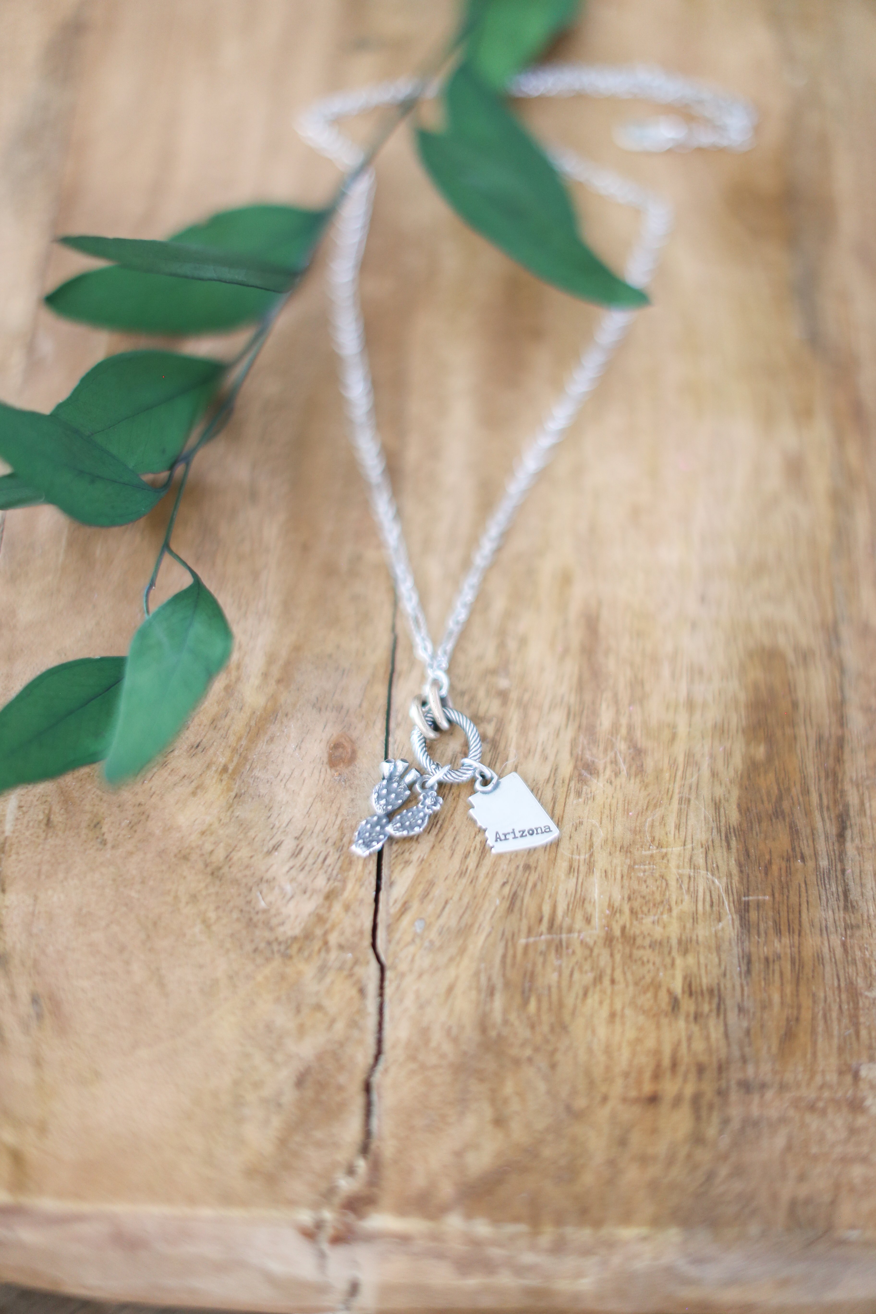 Coupled with the necklace ( see how you can get this for free below!) Arizona state charm speaks for itself. A perfect reminder of how much I love my state! It reminds me of how much I value the meaning of belonging and how much I adore raising my family in the same state I was born in! Don’t worry I’m sure they have your state too!
