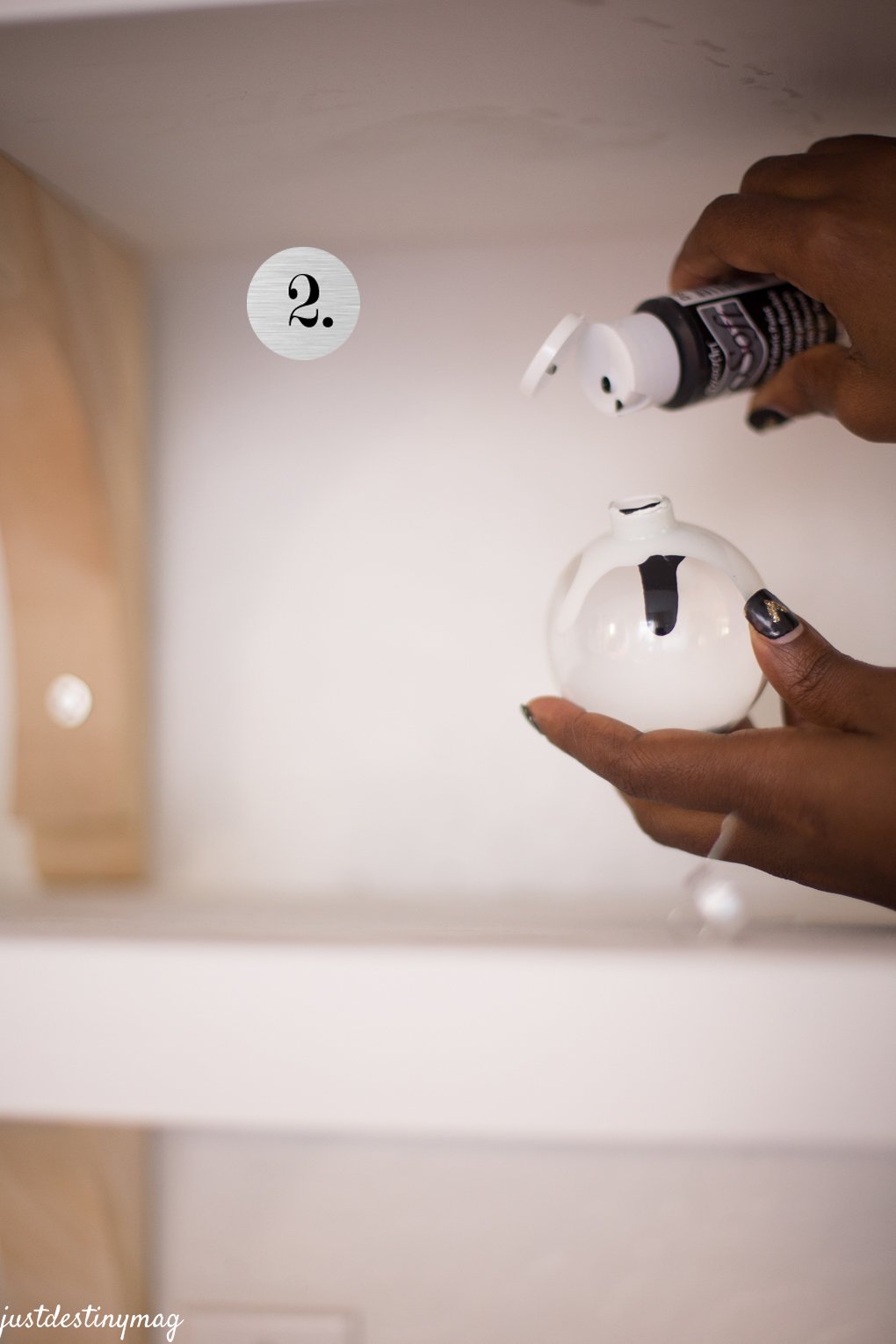 Immediately add the black paint to the bottom and the sides. Then turn the ornament over.