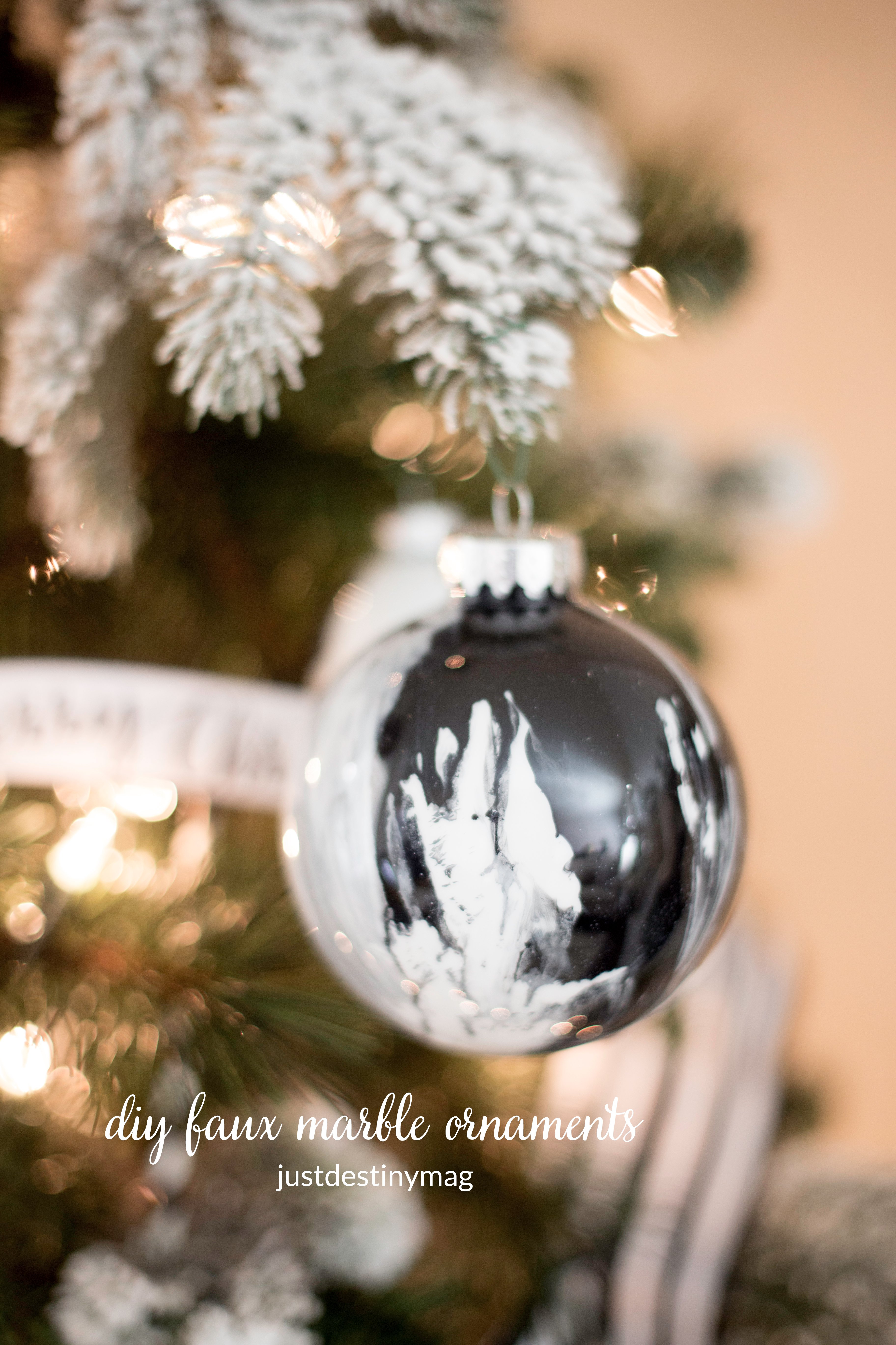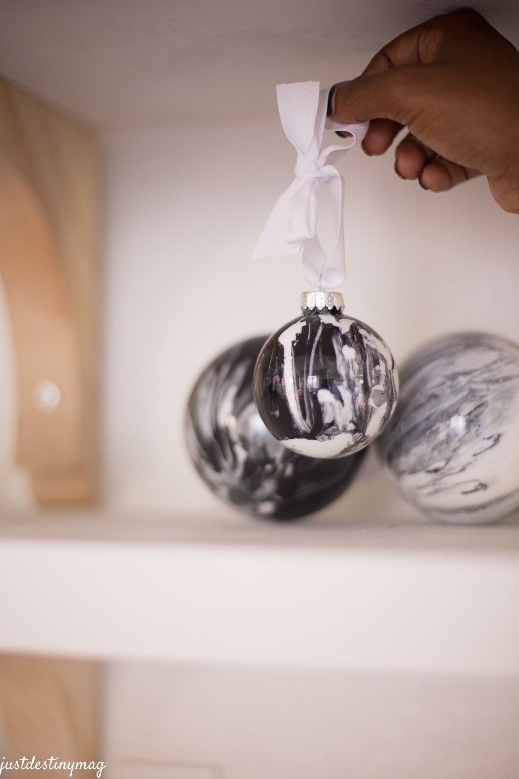 This is probably one of my favorite projects to date. It’s one of those projects I thought of while lying in bed and experimented the next morning. Handmade Christmas ornaments are a special way to add some personal touches to your tree. These faux marble ornaments make my black and white Christmas tree elegant and classy! You can pick up all these supplies at your local Michaels!