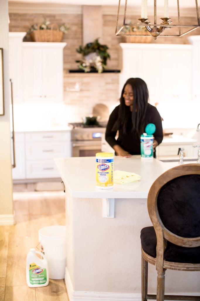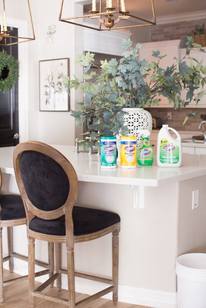I know I’m not the only one who seems like a disinfecting ninja when it comes to wiping down surfaces when someone in the house is sick. But I can’t help it. One time my oldest was sick and noticed I was following him around like a mad woman! You don’t need to go crazy like me but using disinfect wipes like my favorite from Clorox gives me peace of mind that little germs are dying around the bathroom surfaces, door handles, stairs, light switches and anywhere else cute grimy little hands go when they are sick. I love my cute cleaners to freshen up my home but when I want to kill 99.9% of bacteria & viruses, it’s Clorox!