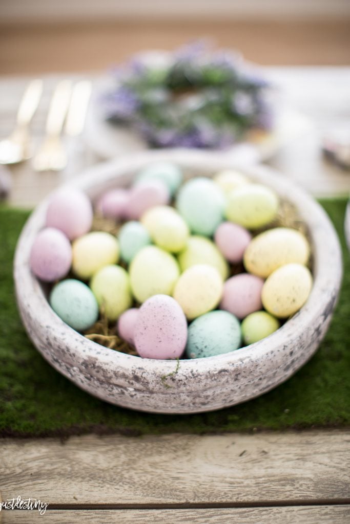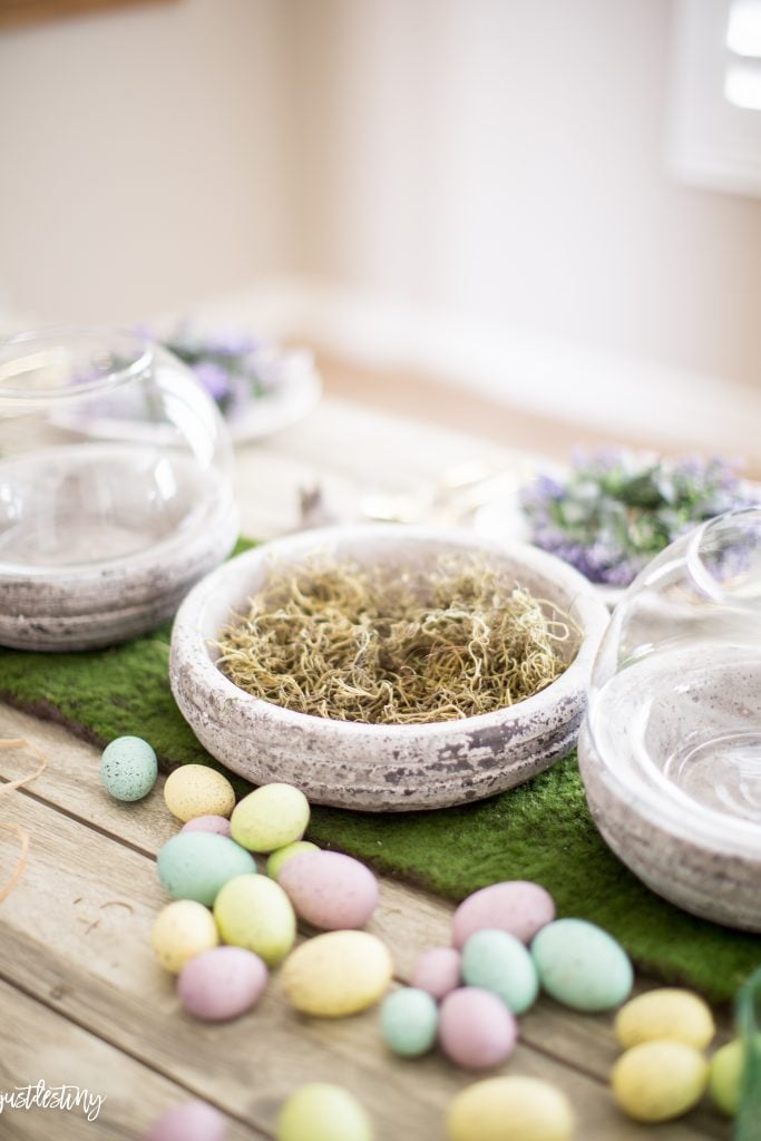 Today I’m sharing a simple DIY Easter centerpiece just for you! No matter if you’re hosting a full on dinner or helping out with some part of Easter celebrations, this centerpiece is easy to put together and can be done using other materials besides the ones that are shown! SO if you don’t have everything I have, head to your local World Market or dig out some of your home decor stashes and make your own!