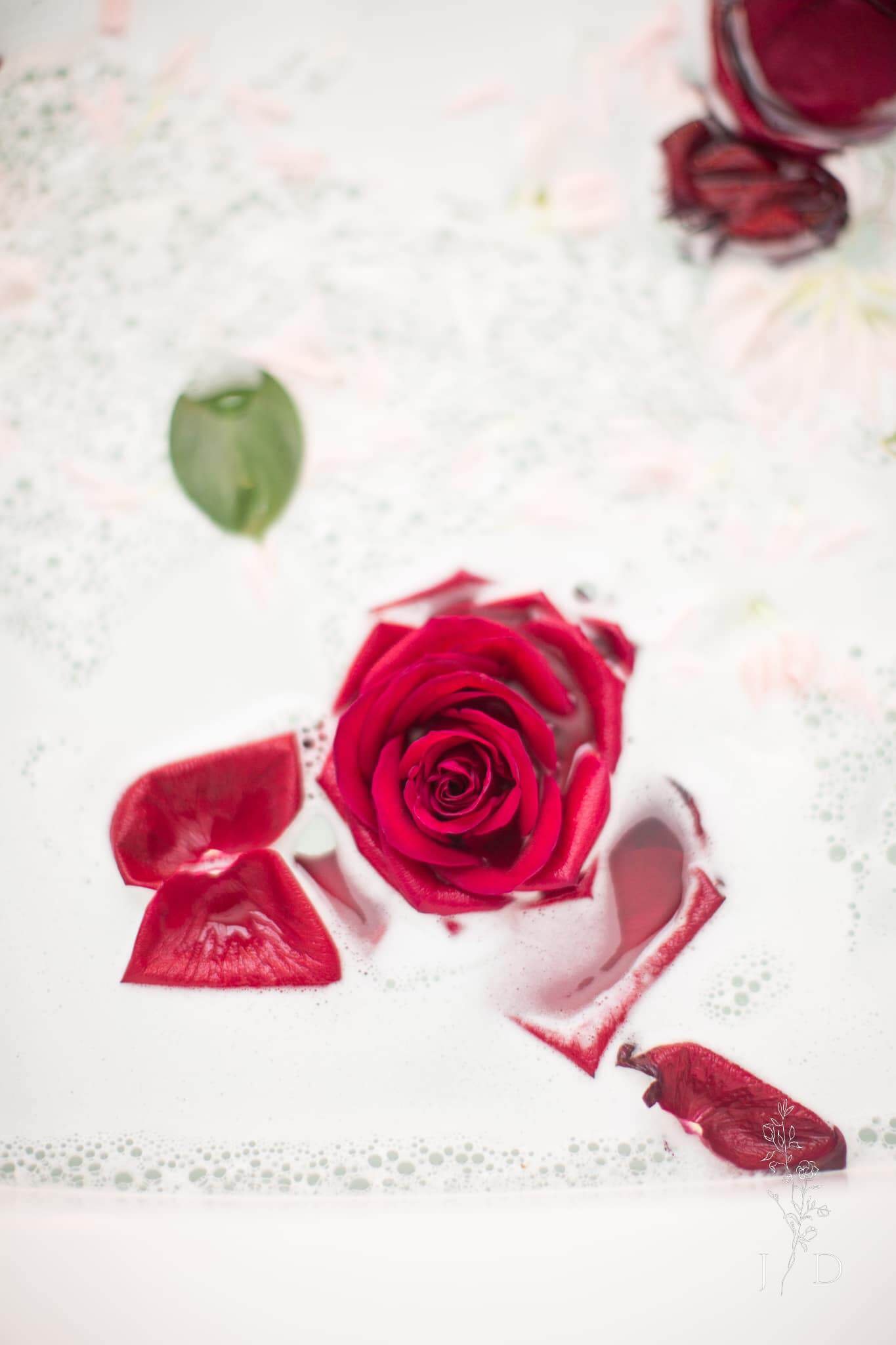 Finally sprinkle organic rose petals or dried petals over the bath. You can also add full roses for a more romantic look.