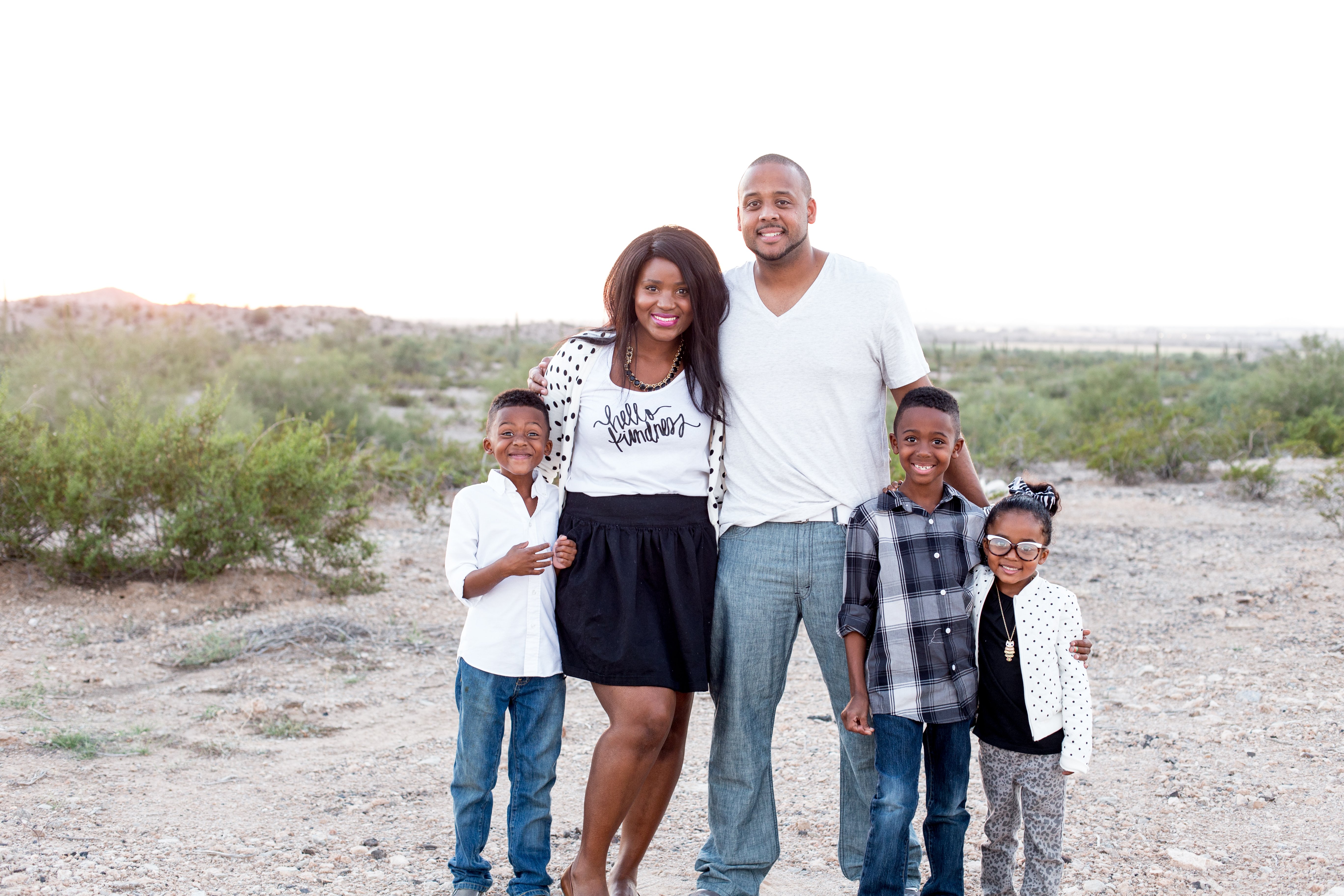 Choosing a location is the first thing you want to do when looking to shoot your own family photos. Parks, open fields, or your backyard are perfect places to start. You want a place that has great lighting (read below for more info about that) and that portrays the type of look you’re going for. I was born and raised in PHX so this year I just wanted something out in the desert, just a few minutes from our home.