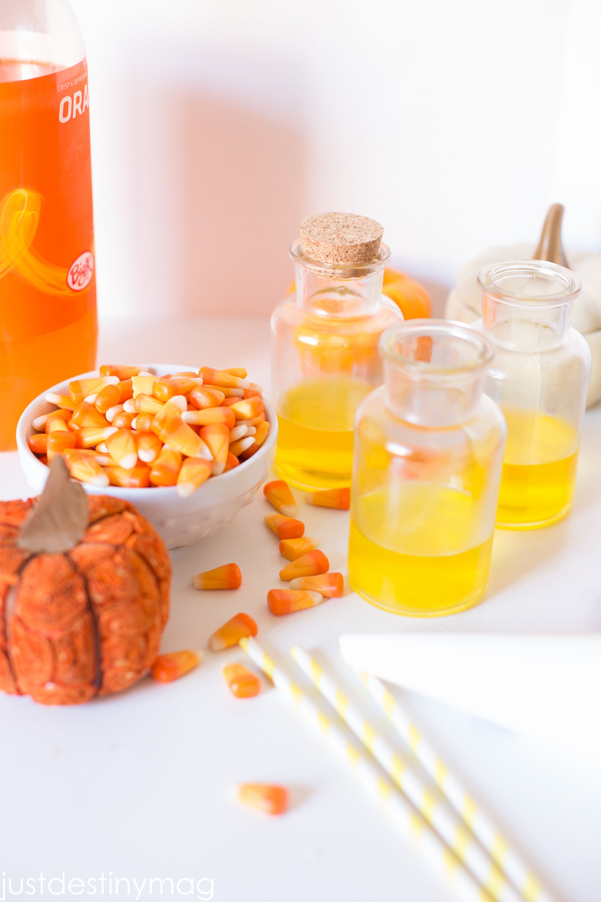 First thing you’re going to do is mix your jello and pour it into each glass about 1/3 of the way. Then allow for the jello to set by placing it into the refrigerator overnight or 4-6 hours. I found these cute little bottles in the Target dollar section. I thought they would be a fun little addition to the Halloween theme!