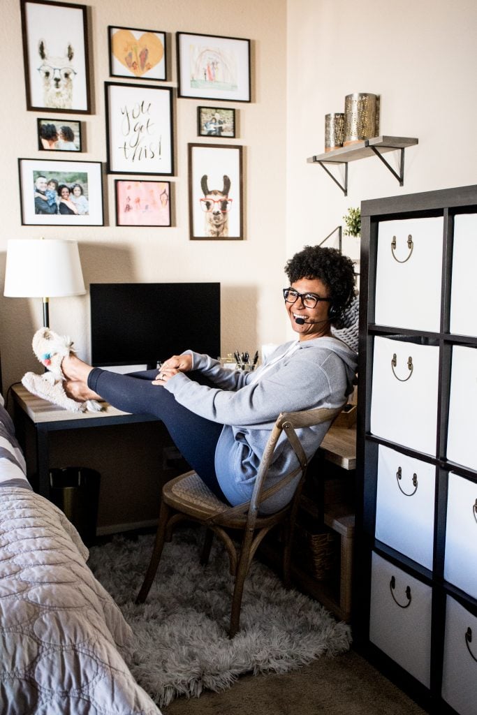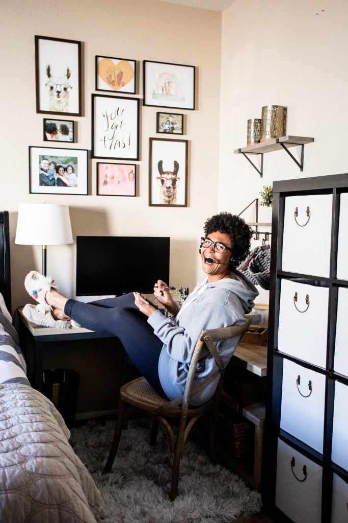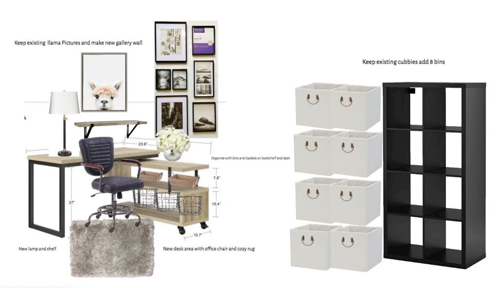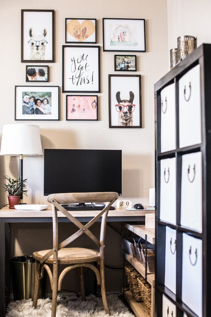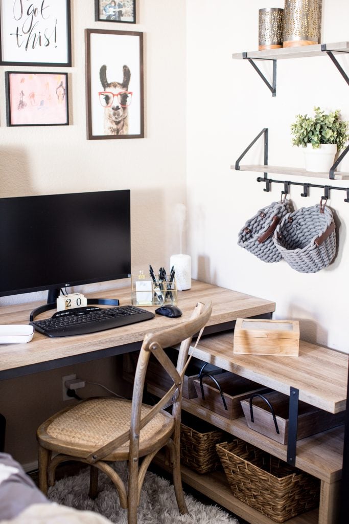 Make this spot in her home functional home office ( because she actually has to work here) cozy ( because she’s at home so why not! ) and organized ( cause you know,LIFE! )