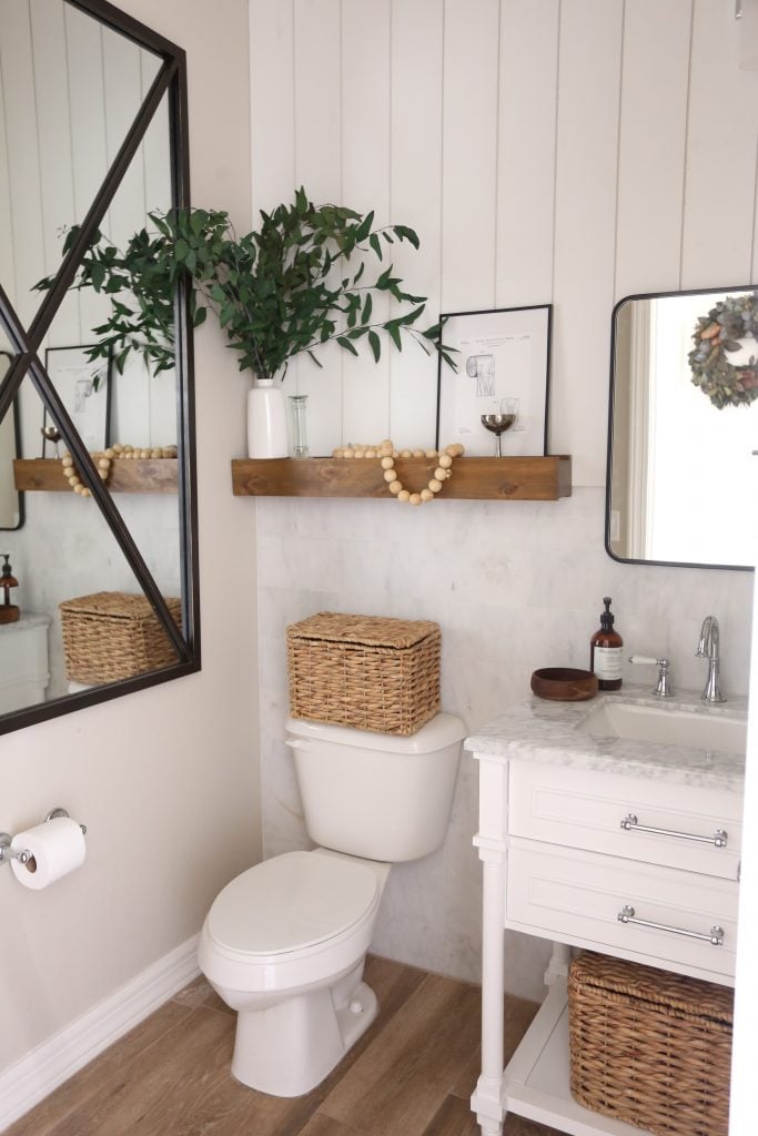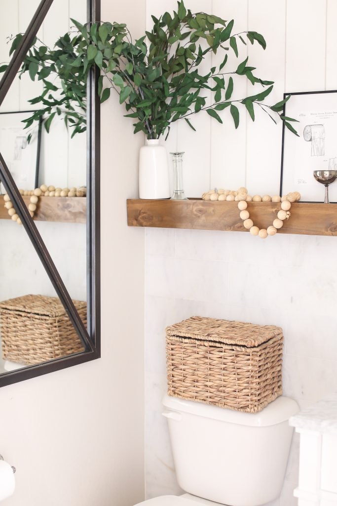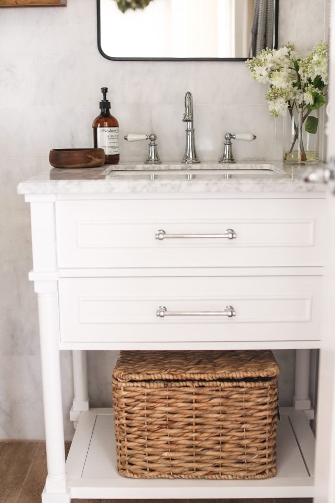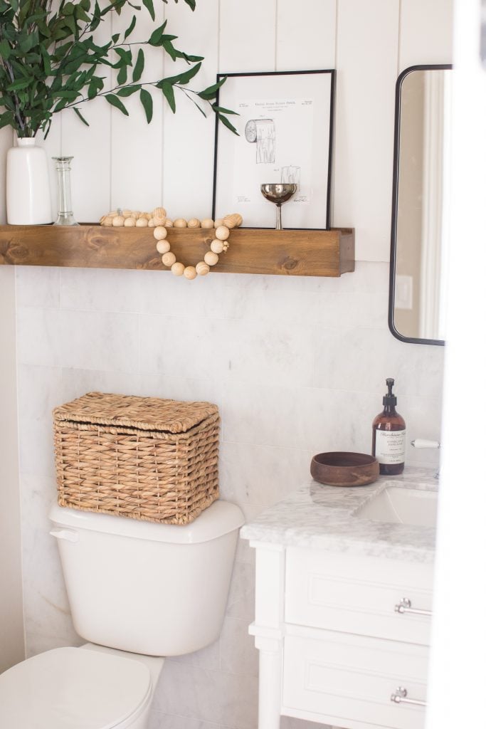 But I knew I wanted something that was mix between classic and some rustic elements as well. I like spaces to feel cozy and for the bathroom I like it to feel some what moody. So to get some help on the direction, I asked you guys if I should leave my wall white or paint it dark and you guys really were SPLIT! Some of you thought the dark would be depressing…lol and the others thought the white was too safe!