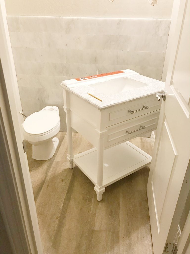 This was probably one of the “simplest” projects we did last year but it was a bit time consuming too! Because of some delays with our vanity being on backorder we were suck at this point for a while but we finally got it in!