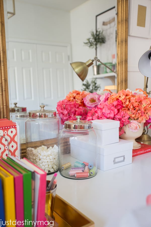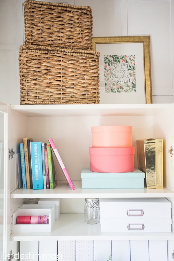 I am so impressed with everything in your office. The walls are so adorable and your storage system looks so amazing. Where did you find the the pink boxes and even the white boxes with the gold trim? Were they diy? Thanks for all the inspiration.