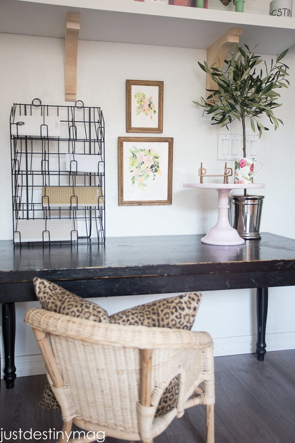 I love flowers! As much as I would love to have fresh ones in my home at all time it’s just not realistic. This little combo was made using faux flowers from Michaels floral section. I love how it ties in all the colors I love for this space. Also using different boxes on my desk helps me hide the mess or at least put away current projects that I’m working on. I love these photo boxes from the Recollections line. They are only about 2 bucks each!