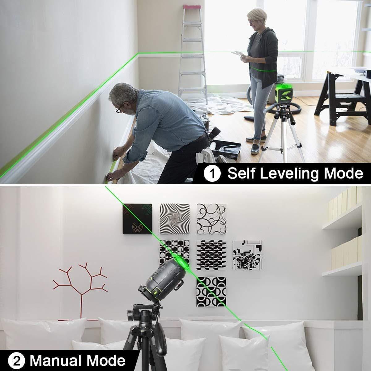 MULTIFUNCTIONAL MODE- The horizontal and vertical 360° laser lines can be switched individually or together. With our smart pendulum system, this laser level tool self levels and indicates out-of-level condition while pendulum unlocked. Once pendulum locked, it switches to manual mode to lock lines for use at any angle.