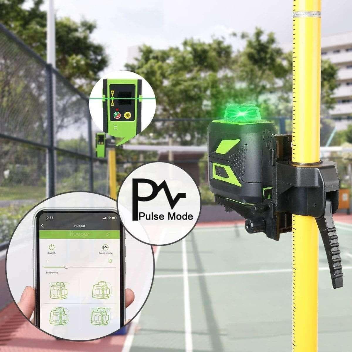 Pulse mode extends the working range up to 200Ft in brighter working conditions when using with Huepar Line Laser Receiver.