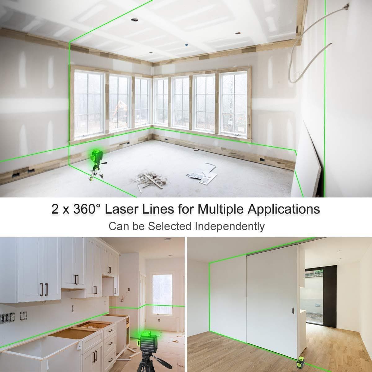 Fully Layout with 2 x 360° Line Lasers: The laser level B02CG projects two 360° laser lines cover the floor, wall, ceiling around the room. The horizontal line, vertical line and combined laser lines can be selected individually depends on job site applications. With our smart pendulum system, this laser level tool self-levels and indicates out-of-level condition while pendulum unlocked. Once pendulum locked, it switches to manual mode to lock lines for use at any angle.