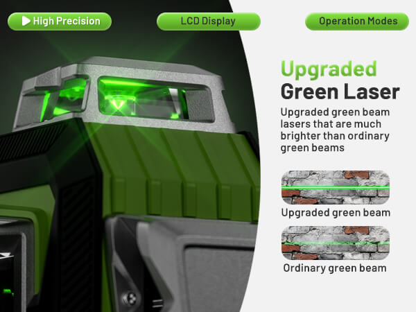 - Upgraded Green Beam: Superior brightness that guarantees excellent visibility, even in demanding conditions.
