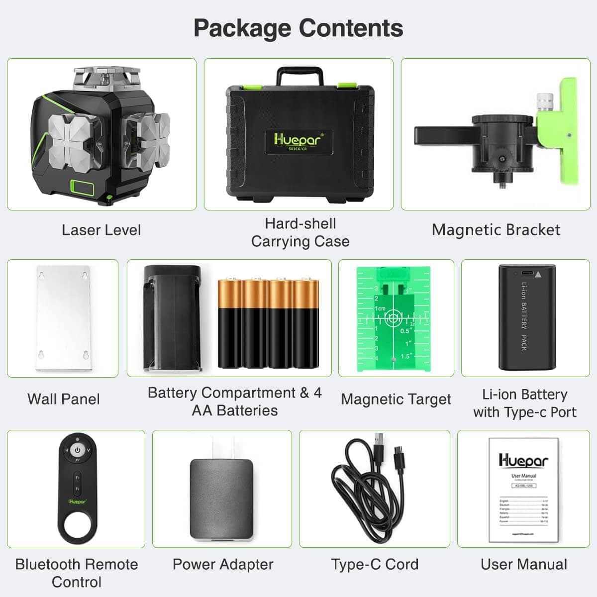 - 1 x Huepar S03CG 3D Cross Line Laser Level