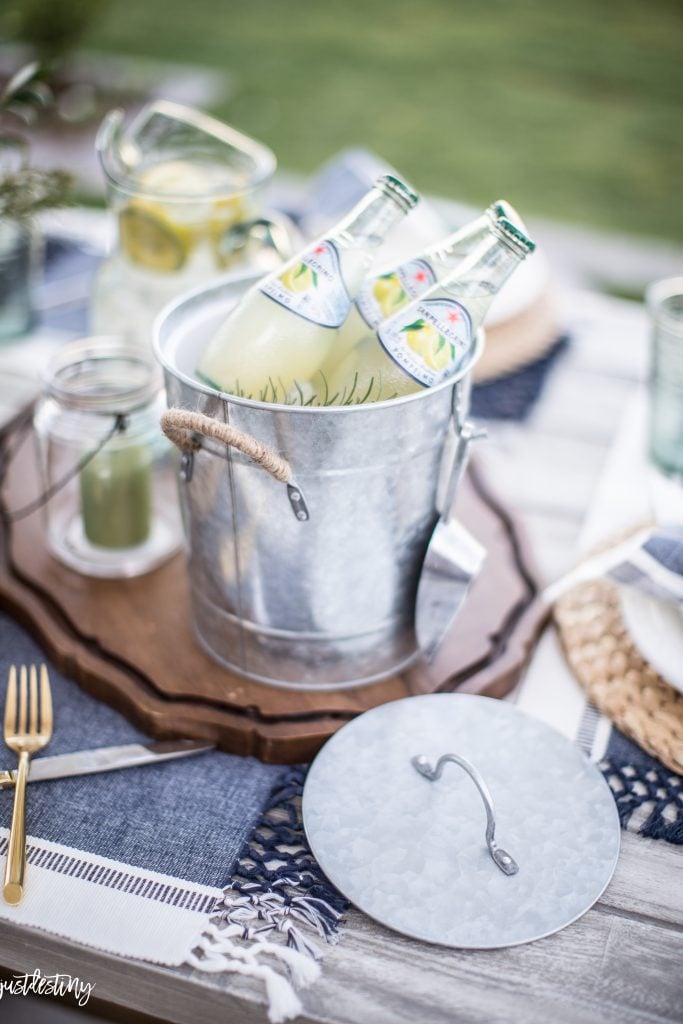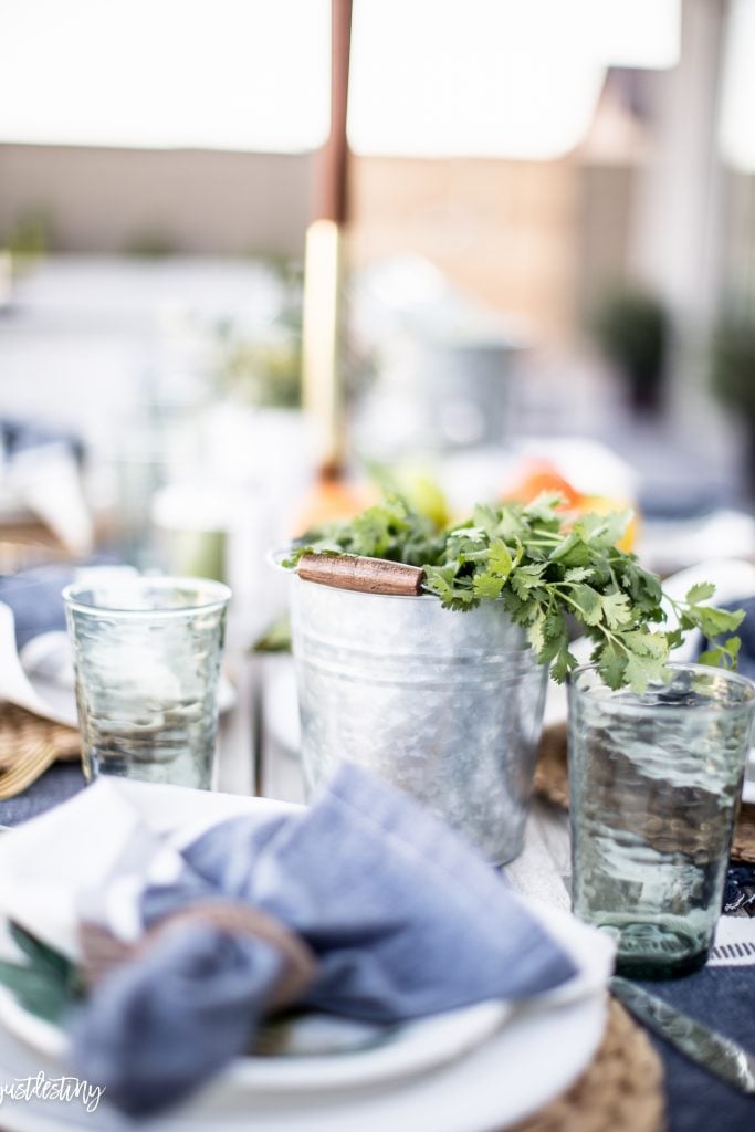 Centerpiece: Every table needs a centerpiece or multiple centerpieces. This is a great time to add a touch of vintage. I think mixing old things with new items gives the table a cozy feel and look. Galvanized buckets gives a summer vibe while with white from the crocks brings in a new and fresh look.