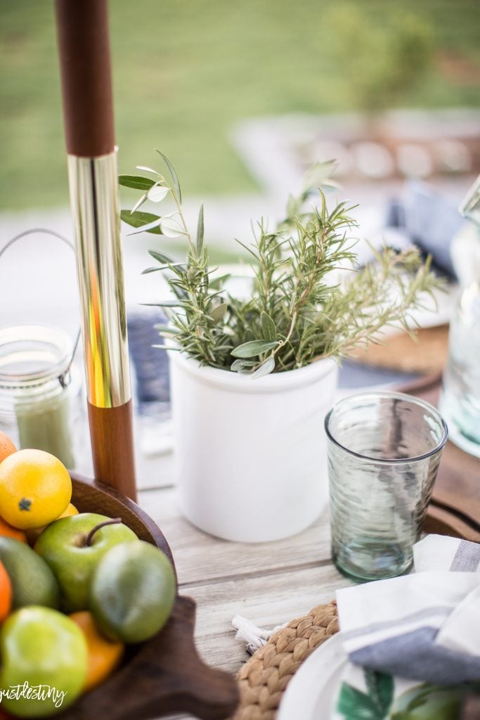 Garden: Bring in items from your yard and garden like fresh herbs, vegetables and fruit. It’s a great way to add a color and nature to the table. Displaying them in crocks, low vases, bowls or trays!