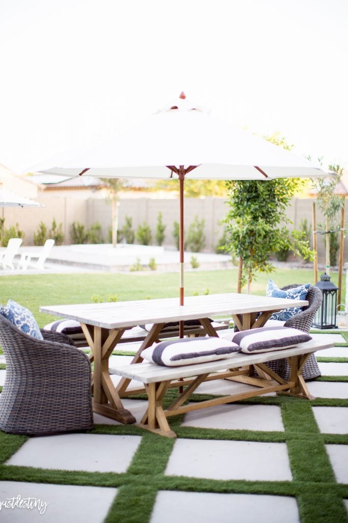 Furniture: To set the perfect outdoor table I always start with a solid table in a neutral color.Then I add seating that is both comfortable and functional.