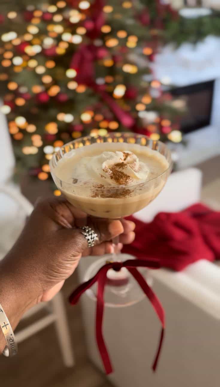 - Pour into glass with ice and add a generous dollop of whipped cream, and finish with a cozy sprinkle of cinnamon on top. It’s Christmas in a glass!