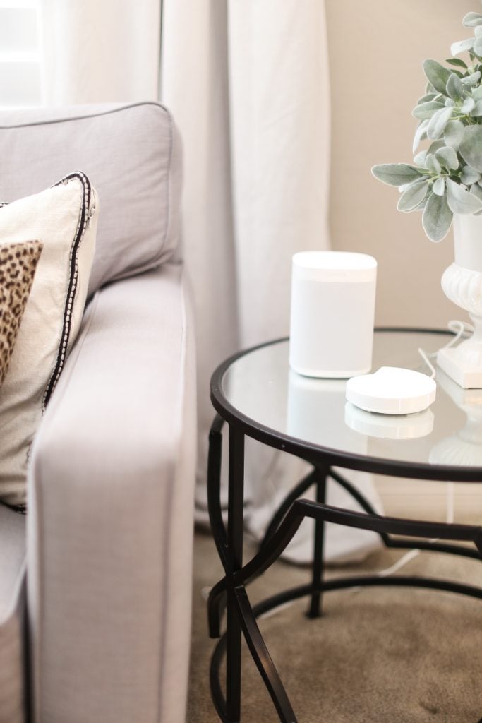 You can have more expensive items like the Echo Show in the main area and then sprinkle more affordable Echos around the house so you have more access to the speaker. In our master bedroom you can see we have one of the mesh discs in here along with a Sonos speaker that is also has Alexa integrated into it!