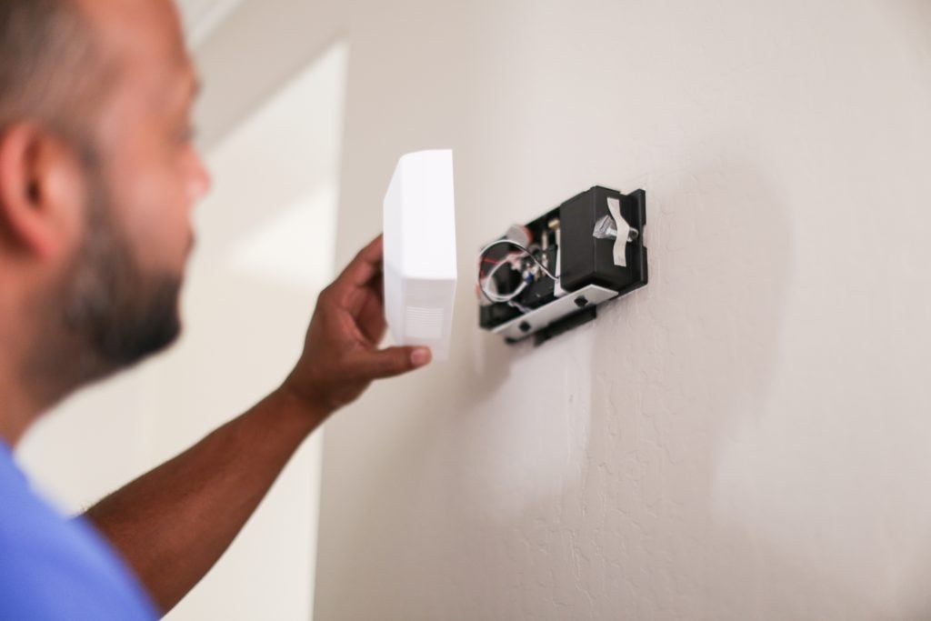 Remove the the faceplate from your video pro with a simple push to reveal the base then connect the wires! Once that’s complete use the screw provided to screw the base back into the anchors.