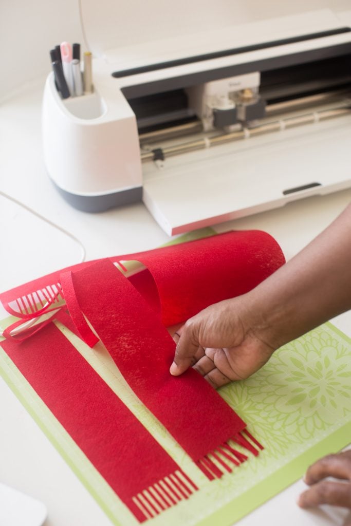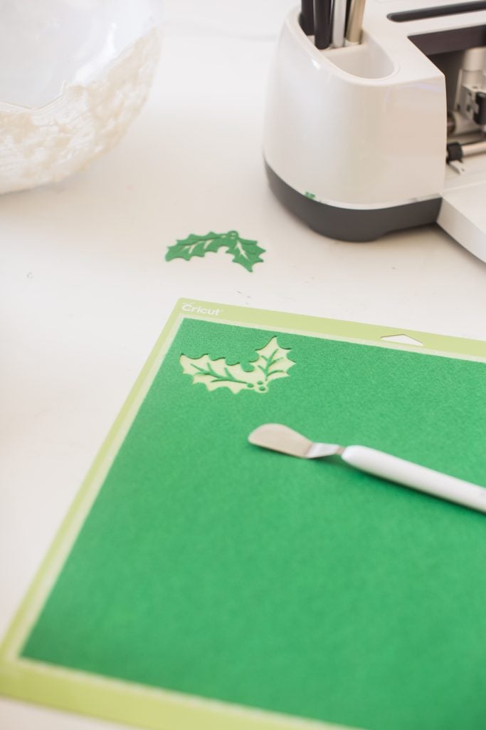 For the felt pieces I used a holly design that I purchased and cut those out as well! The detailed cut is amazing. Gets me every time.