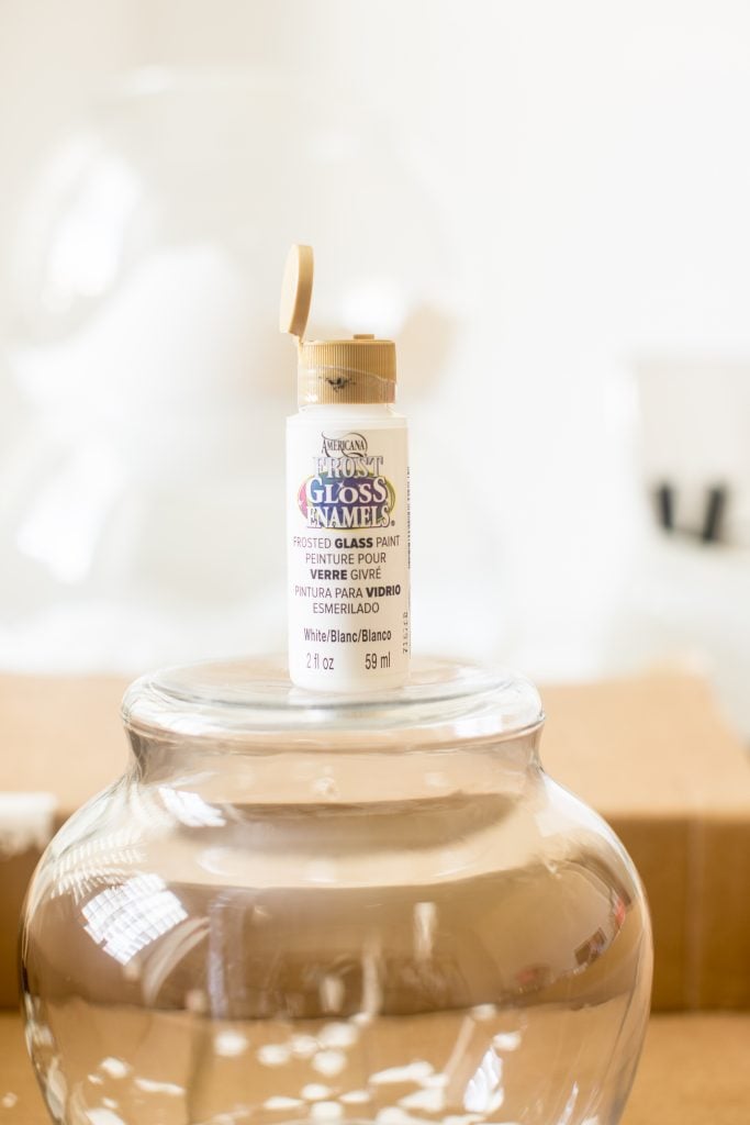 Last use that same technique on the top part. Take off the lid and instead of the the all surface paint apply the Frost Gloss Enamel frosted glass paint in white!
