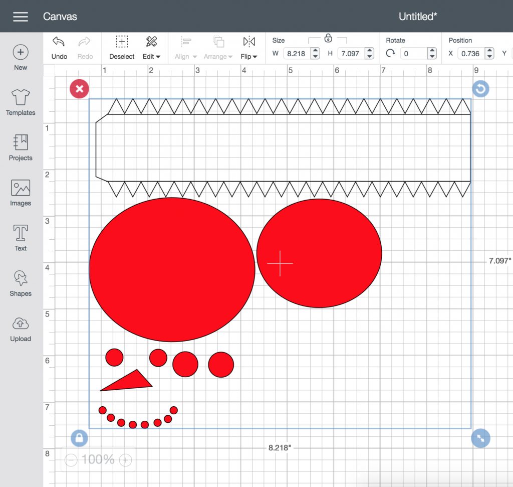 For the scarf I simply made a scarf like design using the rectangle tool. The large one for the base and small ones for the fringe and cut it out with the red felt. Then I welded them together on the program so it would become one piece!