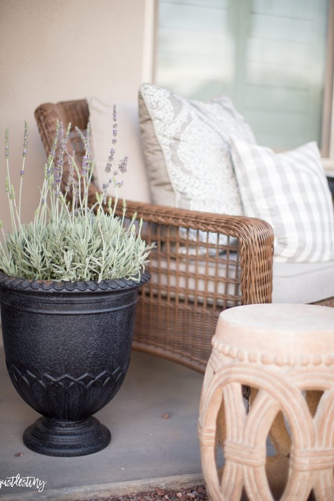 These Better Homes and Garden planter urn in black are a great addition to the space because it allows us to enjoy some natural plants and adds the beautiful scent of lavender to the space. English lavender is one of my favorites and I’m hoping the full sun will let them flourish in this spot!