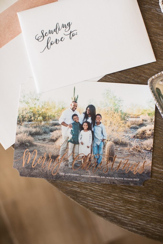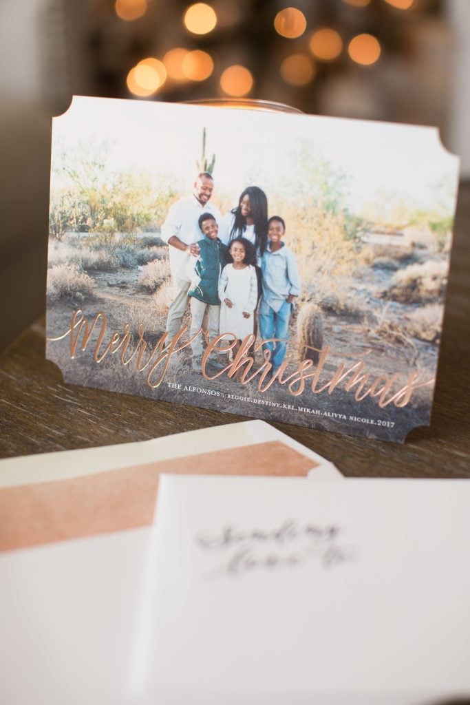 We are ahead of schedule this year and my Christmas cards are here! Signed and sealed! Just waiting to be delivered. This year we were so happy to be invited to a personal session with the fabulous Lauren from Lauren Beglin Photography here in Phoenix. A true gem and a master behind the camera. She got a ton of candid shots of us and of course I used them on our Christmas cards!