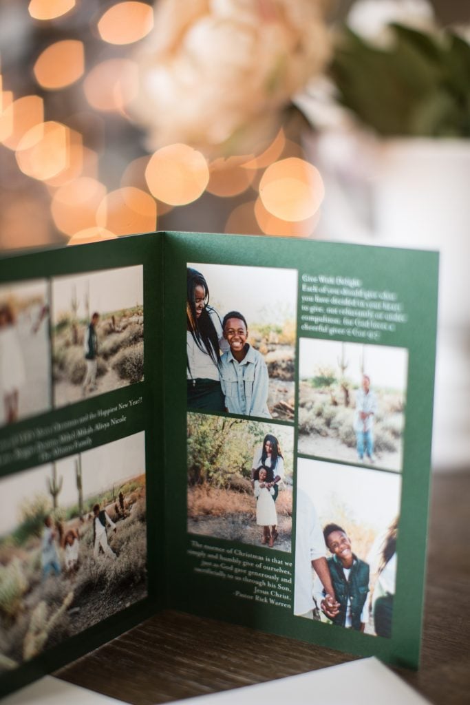 I ultimately decided on the tri-fold style because I could personalize it a bit more! We ended up wearing hunter green in our photos so that’s the color I decided to highlight with our cards too!